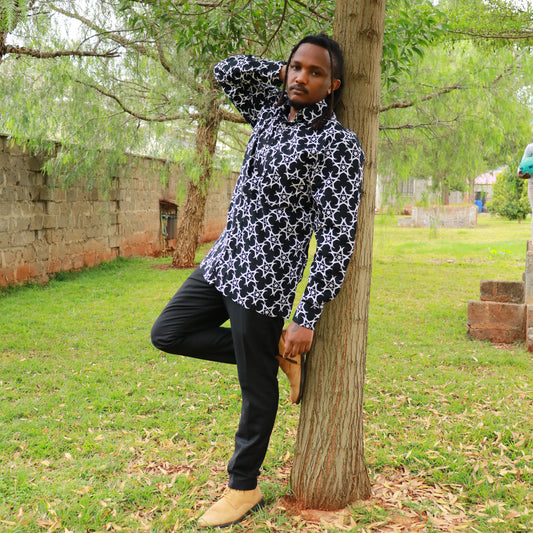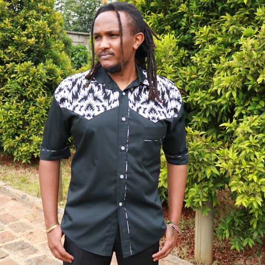 Regular price KSh5,374.00Regular priceUnit price / perSale price KSh5,374.00Short sleeve shirt - Black with African print