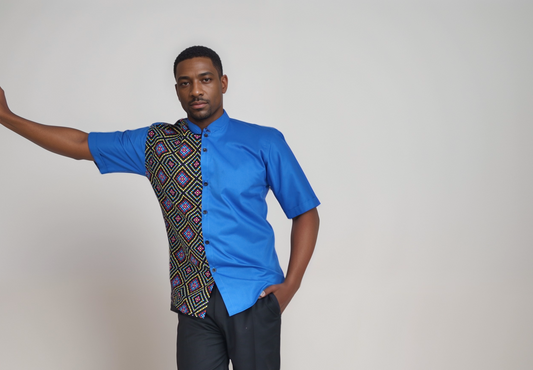 Regular price From KSh5,108.00Regular priceUnit price / perSale price From KSh5,108.00Short sleeve shirt - Turquoise blue mix match with African print