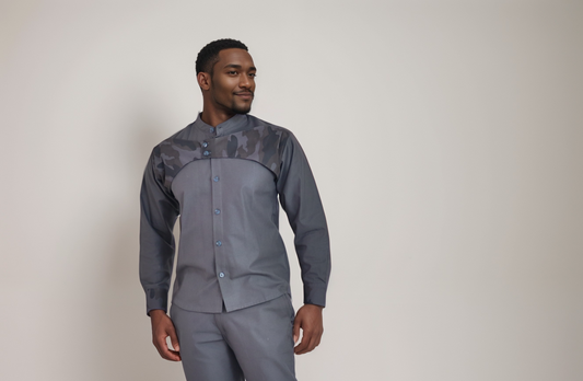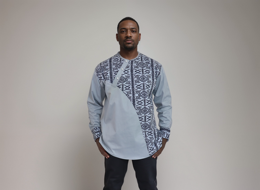 Regular price From KSh4,964.00Regular priceUnit price / perSale price From KSh4,964.00Long sleeve shirt - Light grey with African print