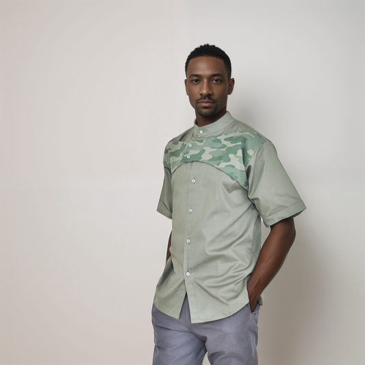 Short sleeve shirt - Jungle green with camouflage on chest.