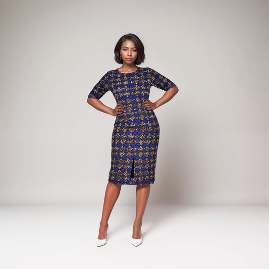 Regular price KSh8,932.00Regular priceUnit price / perSale price KSh8,932.00Sheath-Brown Gold red light blue and black motif