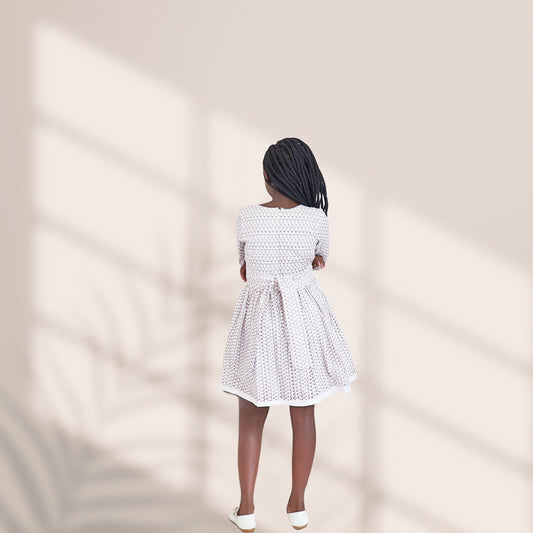 Kinder-Tie and dye dress of maroon brown and orange colours motif