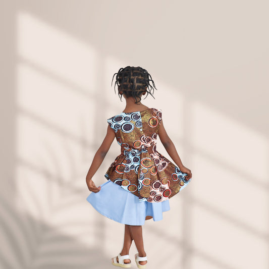 Kinder-Brown Light blue white and peach circles and dots motif