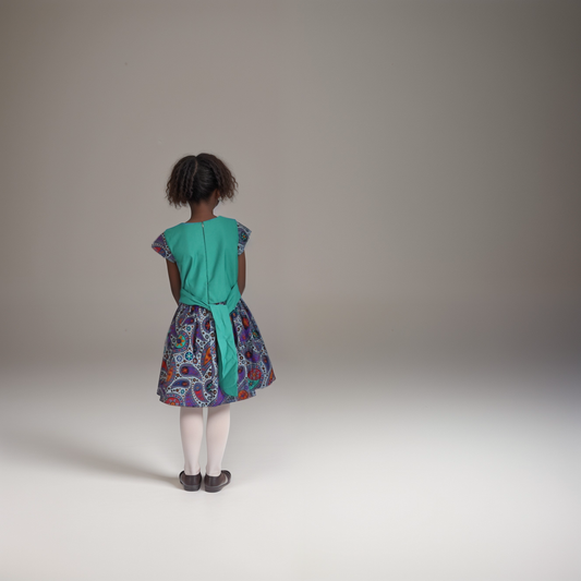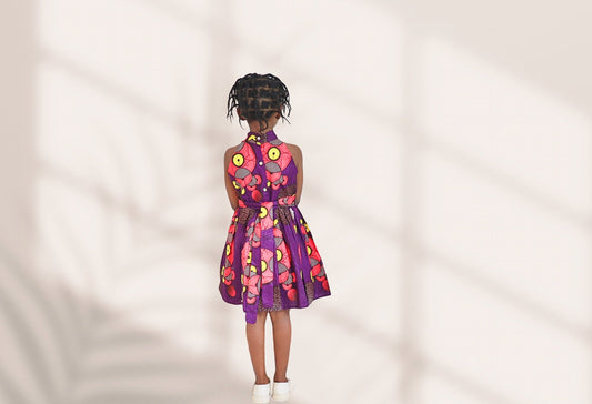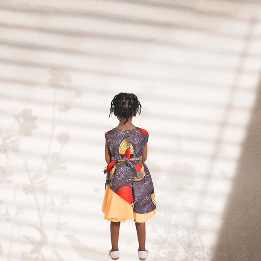 Kinder-Tie and dye dress of maroon brown and orange colours motif