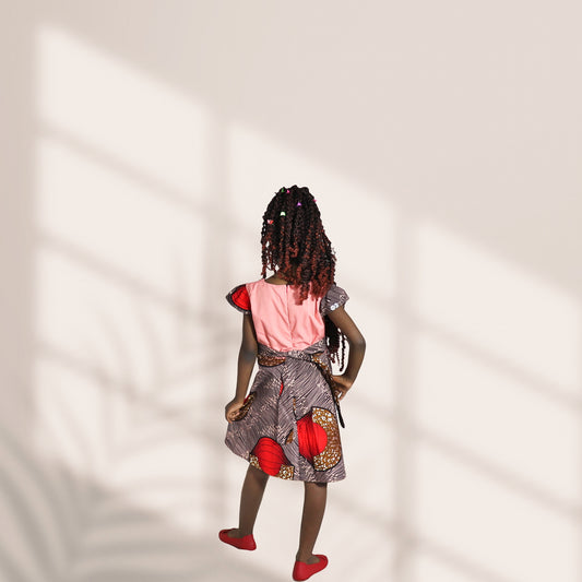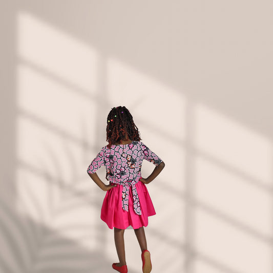 Kinder-Pink Bodice Skirt with dark pink light pink black colours motif