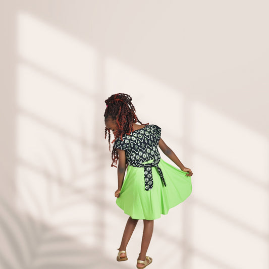 Kinder-Black green white dots and white flowers motif