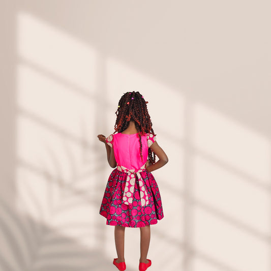 Kinder-Pink background black red and white colours mix bodice motif