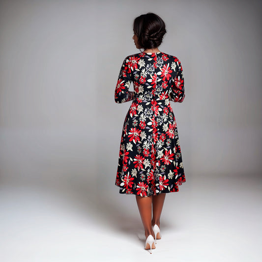 Regular price From KSh5,028.00Regular priceUnit price / perSale price From KSh5,028.00A-Line - turqouise green and black floral motif. Long flared sleeves.