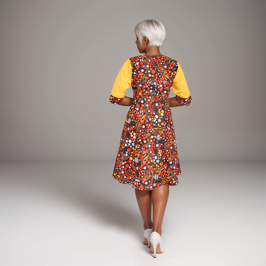 Regular price From KSh5,826.00Regular priceUnit price / perSale price From KSh5,826.00Cape dress-Black yellow and white dots and leaves motif