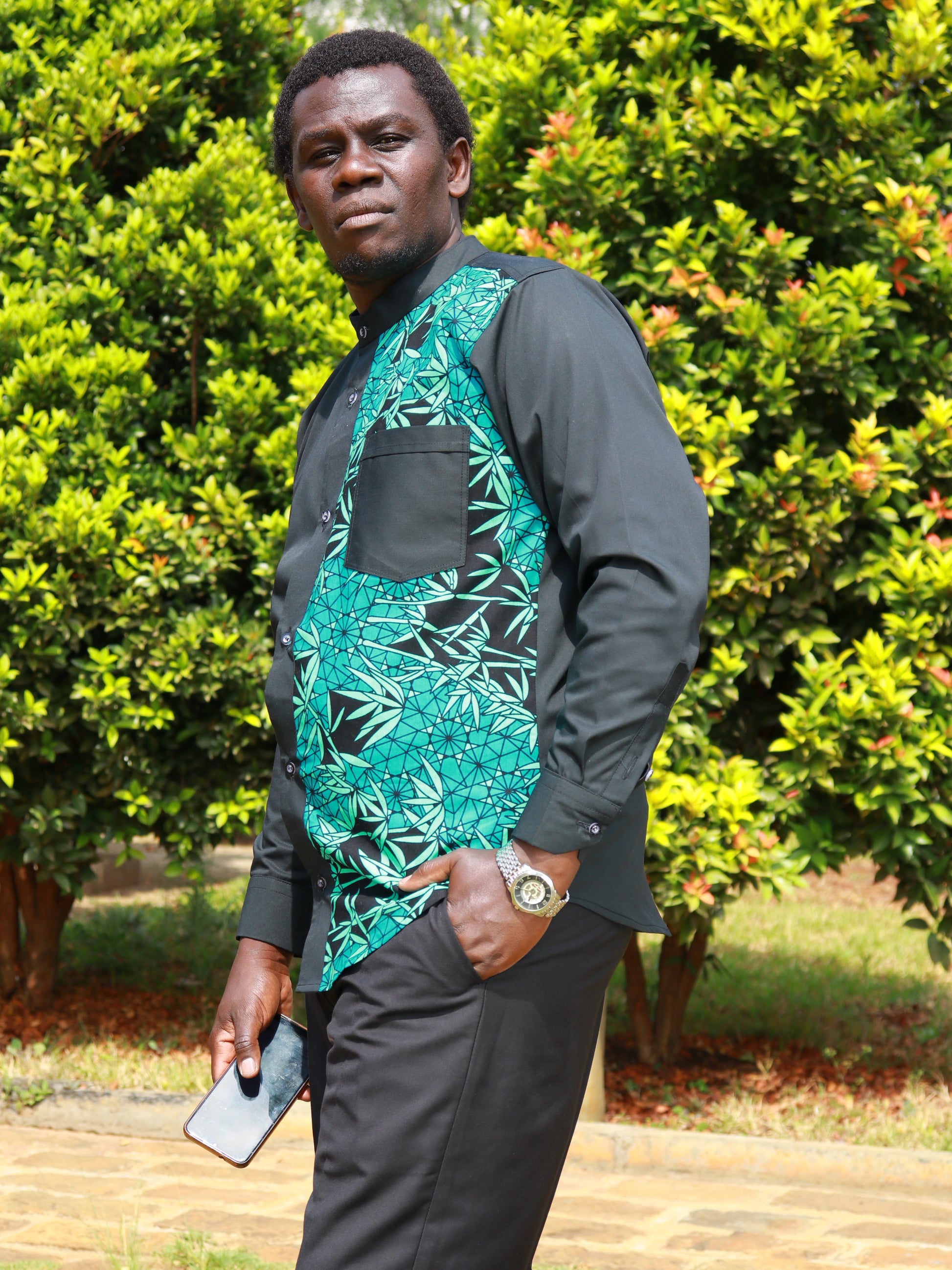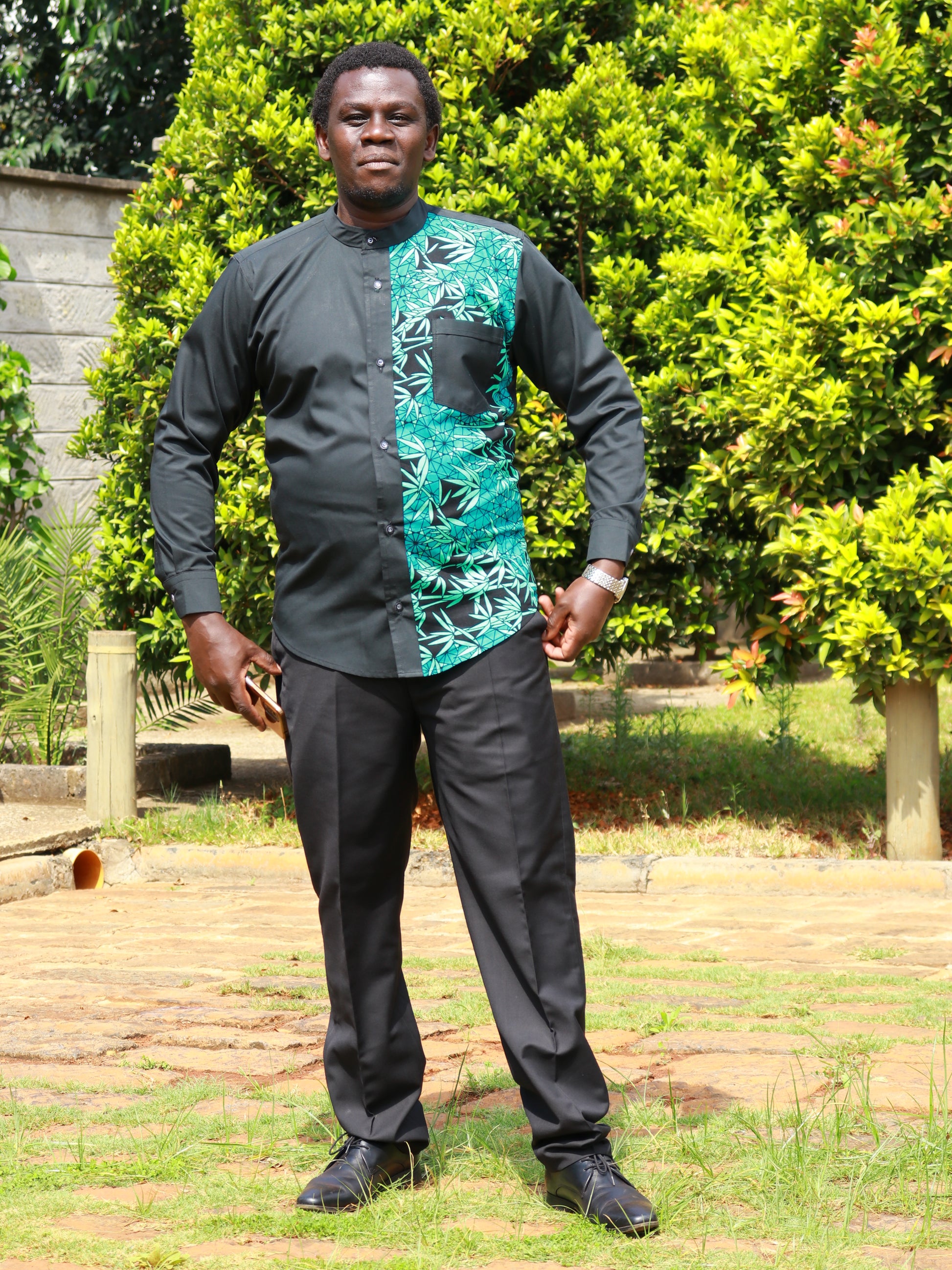 Casual Smart 2 piece - Black background with contrast of African print on the left side